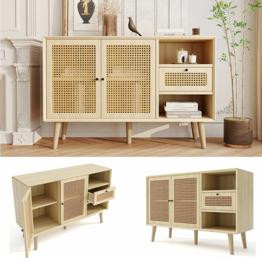 Voir le produitCommode 3 Tiroirs en Bois Naturel et Cannage