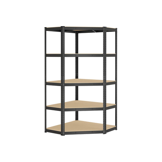 Voir le produitÉtagères d’angle à 5 niveaux en acier noir d'encre et beige naturel