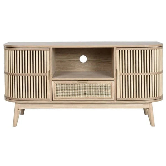 Voir le produitMeuble TV 115 cm Vintage - 2 Portes Effet Naturel Cannage
