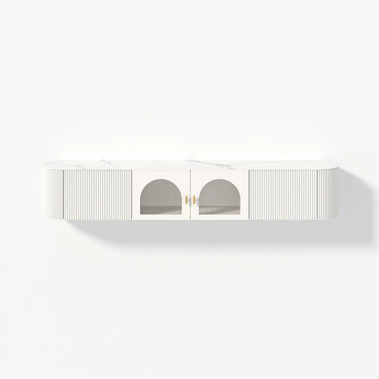 Voir le produitMeuble TV Murale Flottant en Pierre Frittée Blanche