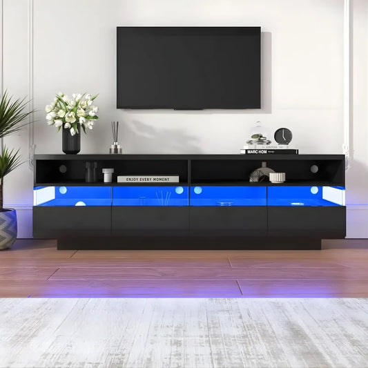 Voir le produitMeuble TV Moderne avec Étagères en Verre et Éclairage LED