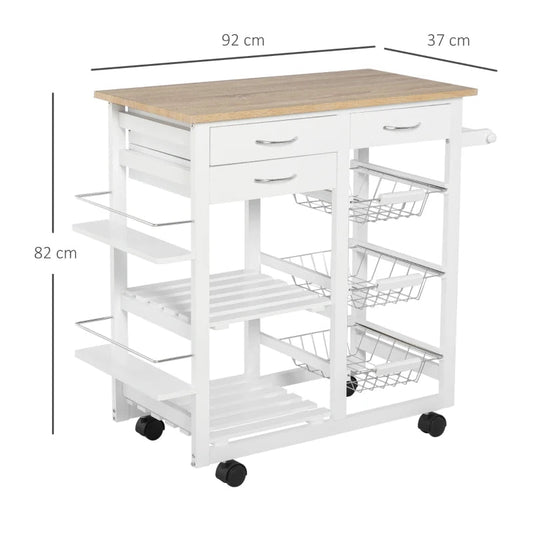 Voir le produitDesserte de Cuisine sur Roulettes avec Plateau en Bois d'Hévéa