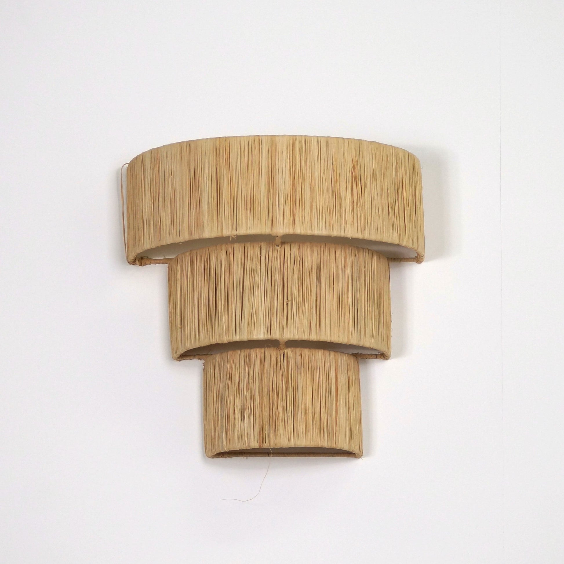 Transformez votre intérieur avec l'élégance naturelle de notre Applique Murale en Raphia - Triple. Fabriquée à la main par des artisans talentueux au Maroc, chaque pièce unique en raphia brut ajoute une touche authentique et sophistiquée à tout style de décoration, qu'il soit bohème, moderne ou scandinave.