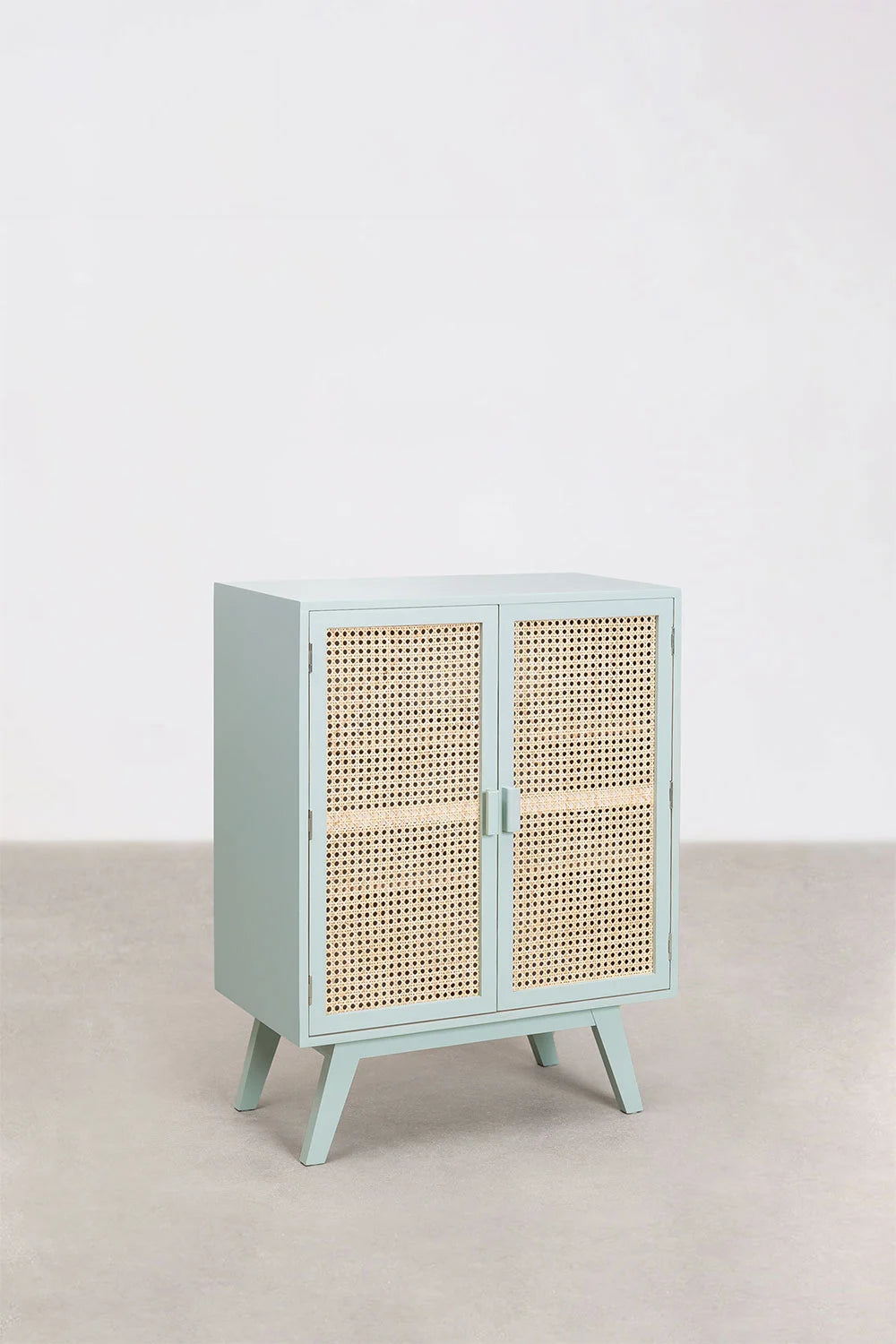 Découvrez le charme intemporel du Buffet en bois avec 2 portes en bois, une pièce maîtresse qui marie élégance vintage et fonctionnalité moderne. Confectionné en bois de paulownia robuste, ce buffet se distingue par ses portes ornées de rotin tressé, une touche artisanale qui attire tous les regards.