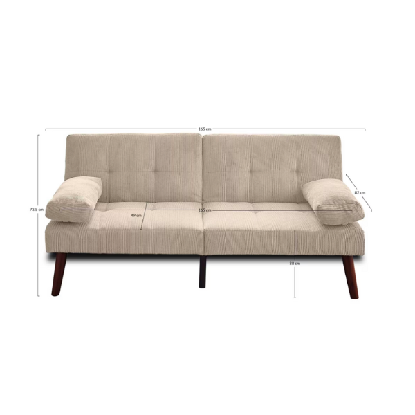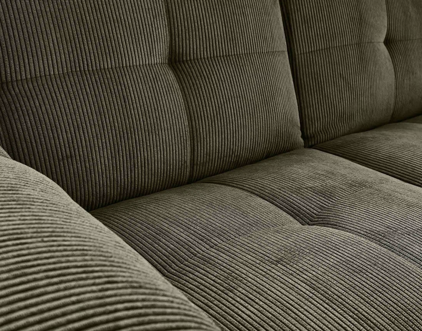 Son tissu en velours côtelé vert luxueux et ses pieds en bois confèrent une touche moderne et sophistiquée à votre intérieur. Accompagné de deux coussins décoratifs, il promet un confort optimal que vous soyez assis ou allongé.