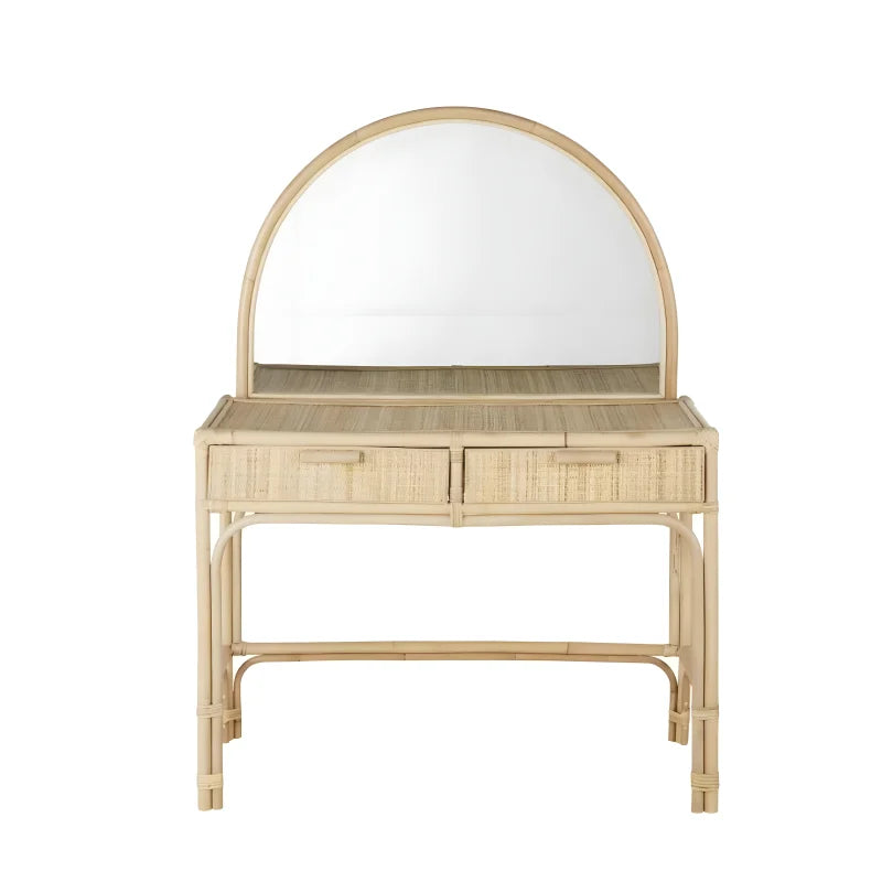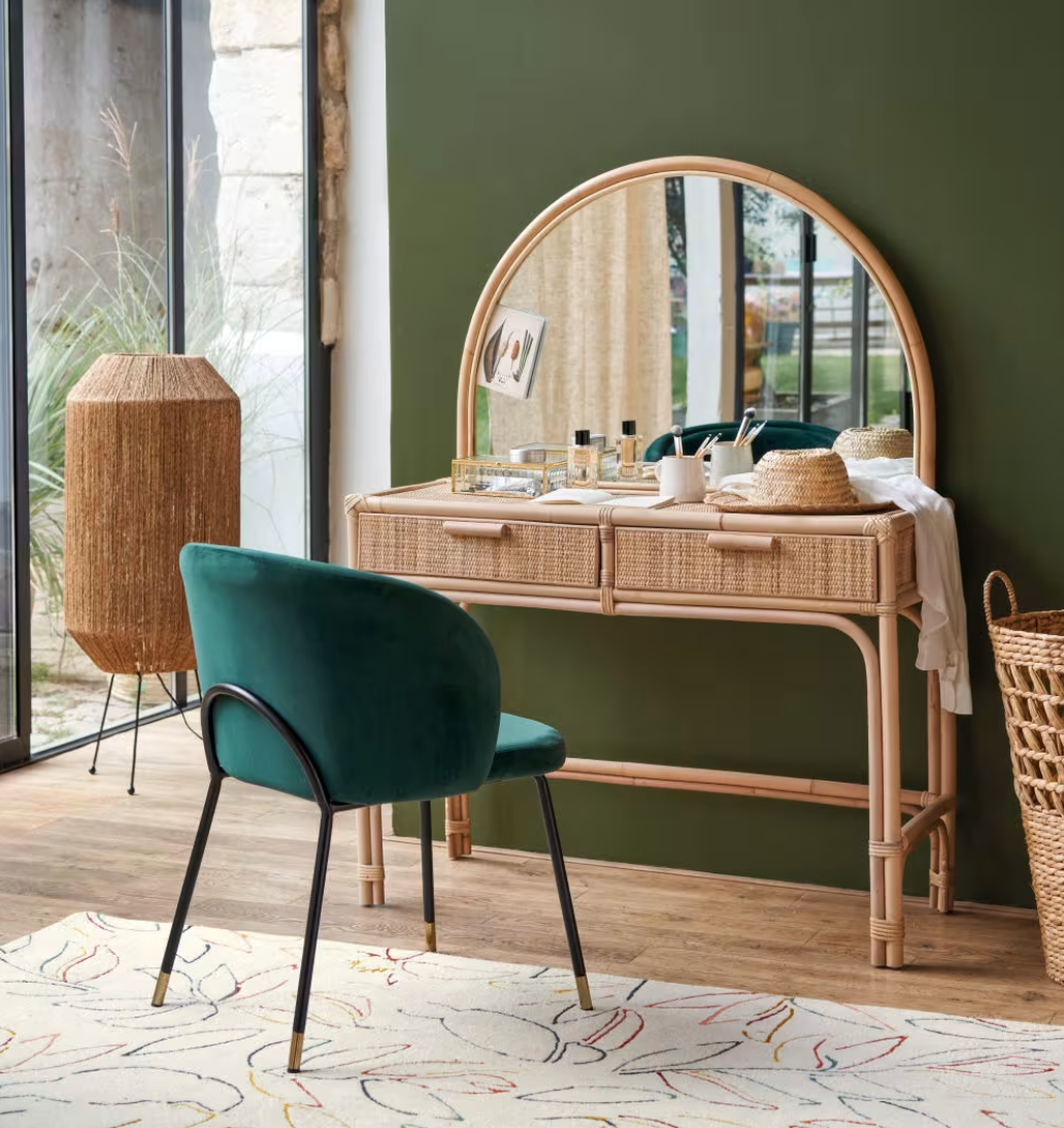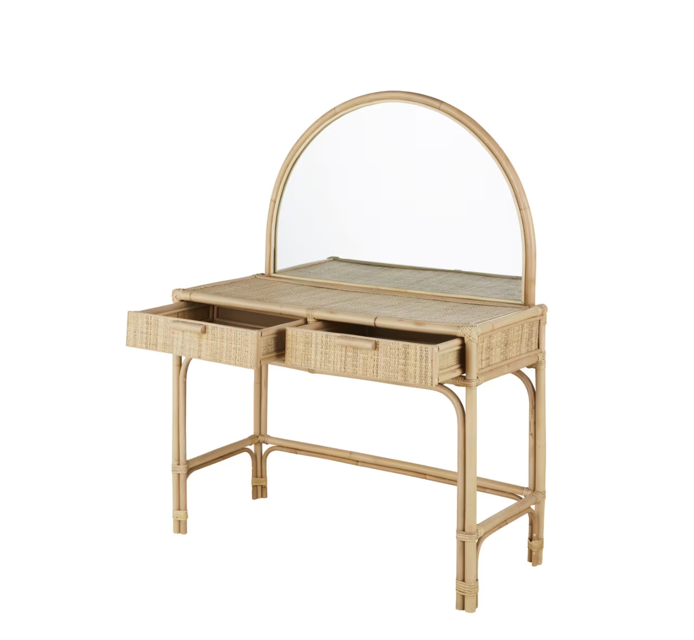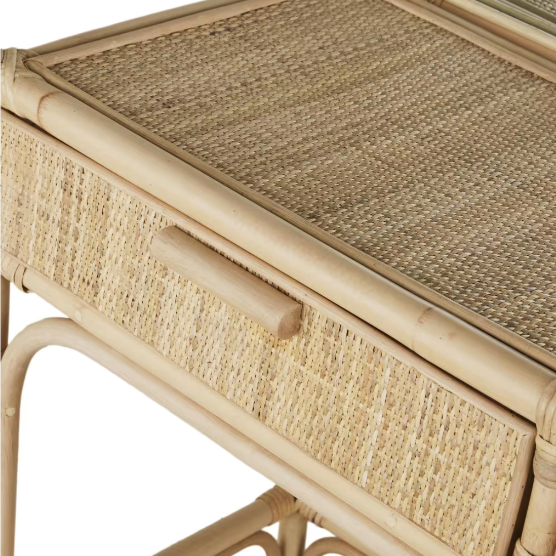 Coiffeuse 2 Tiroirs et Cannage en Rotin
