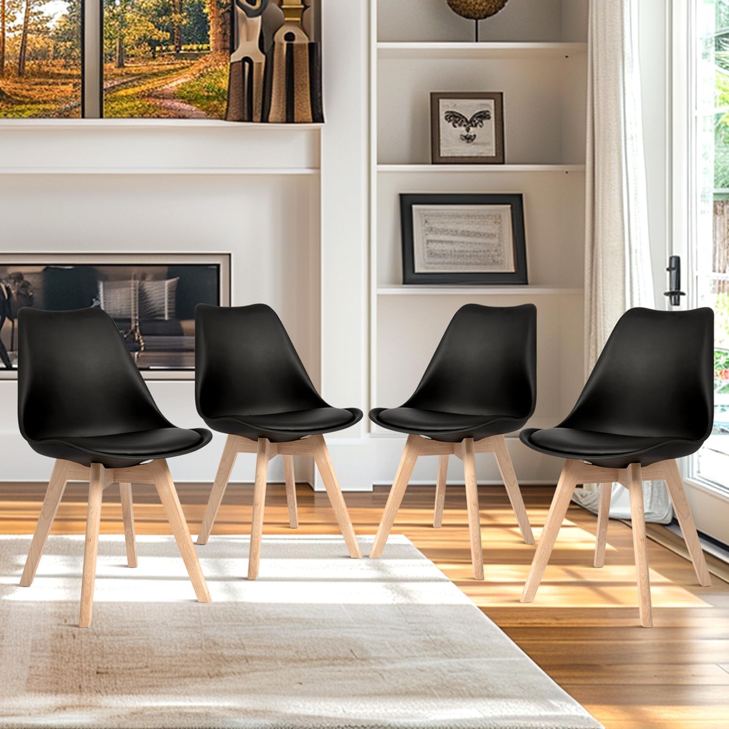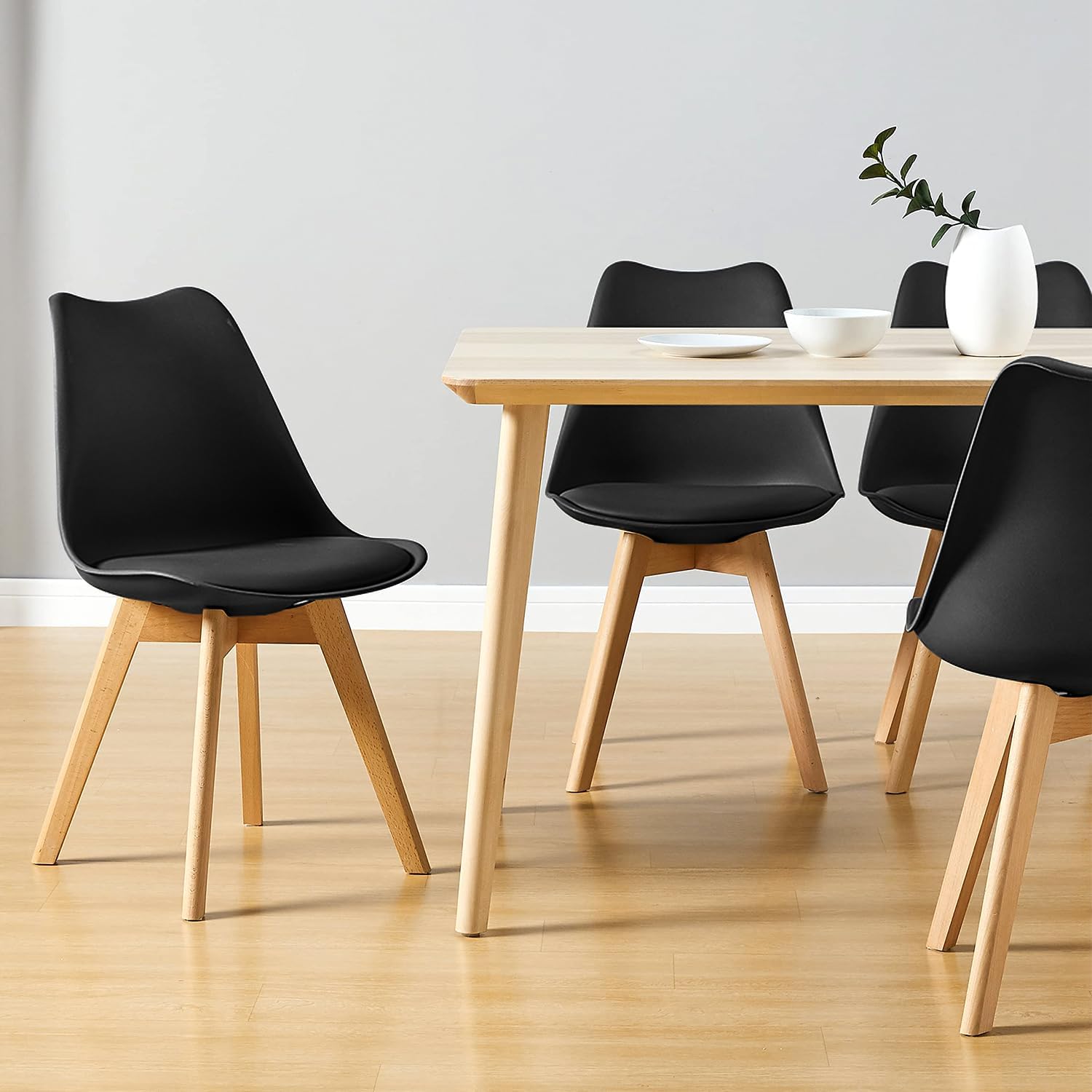 Les pieds en bois massif, résistants aux chocs, sont dotés de patins en feutre antidérapants pour protéger vos sols. Leur couleur noire élégante s'harmonise facilement avec tous les styles de décoration, faisant de ces chaises une option polyvalente pour votre salle à manger, cuisine ou même balcon extérieur.