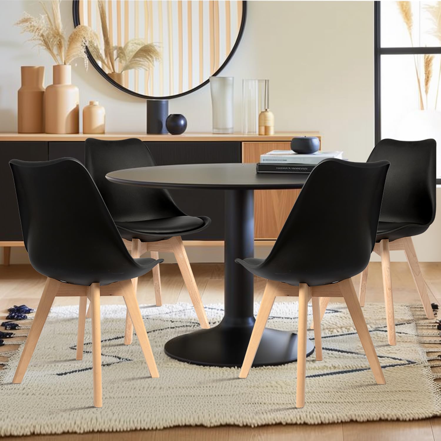 Découvrez le parfait équilibre entre design rétro et confort moderne avec notre lot de 4 chaises noires. Chaque chaise est conçue pour offrir une assise ergonomique grâce à un dossier en plastique moulé de haute qualité et un siège rembourré en simili-cuir, garantissant un confort optimal lors de vos repas.