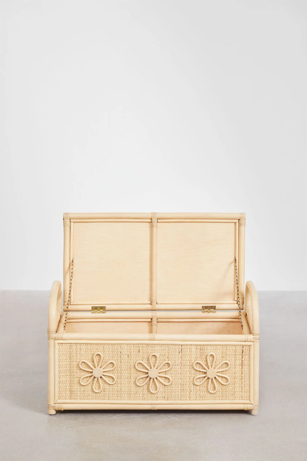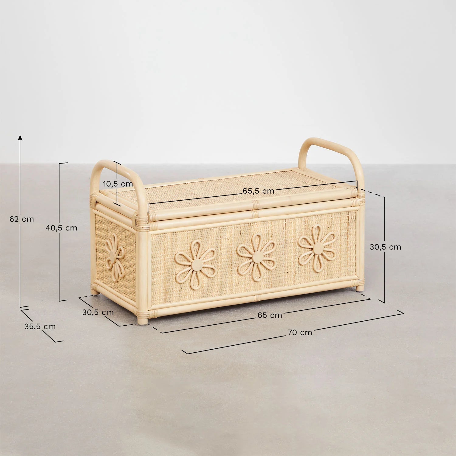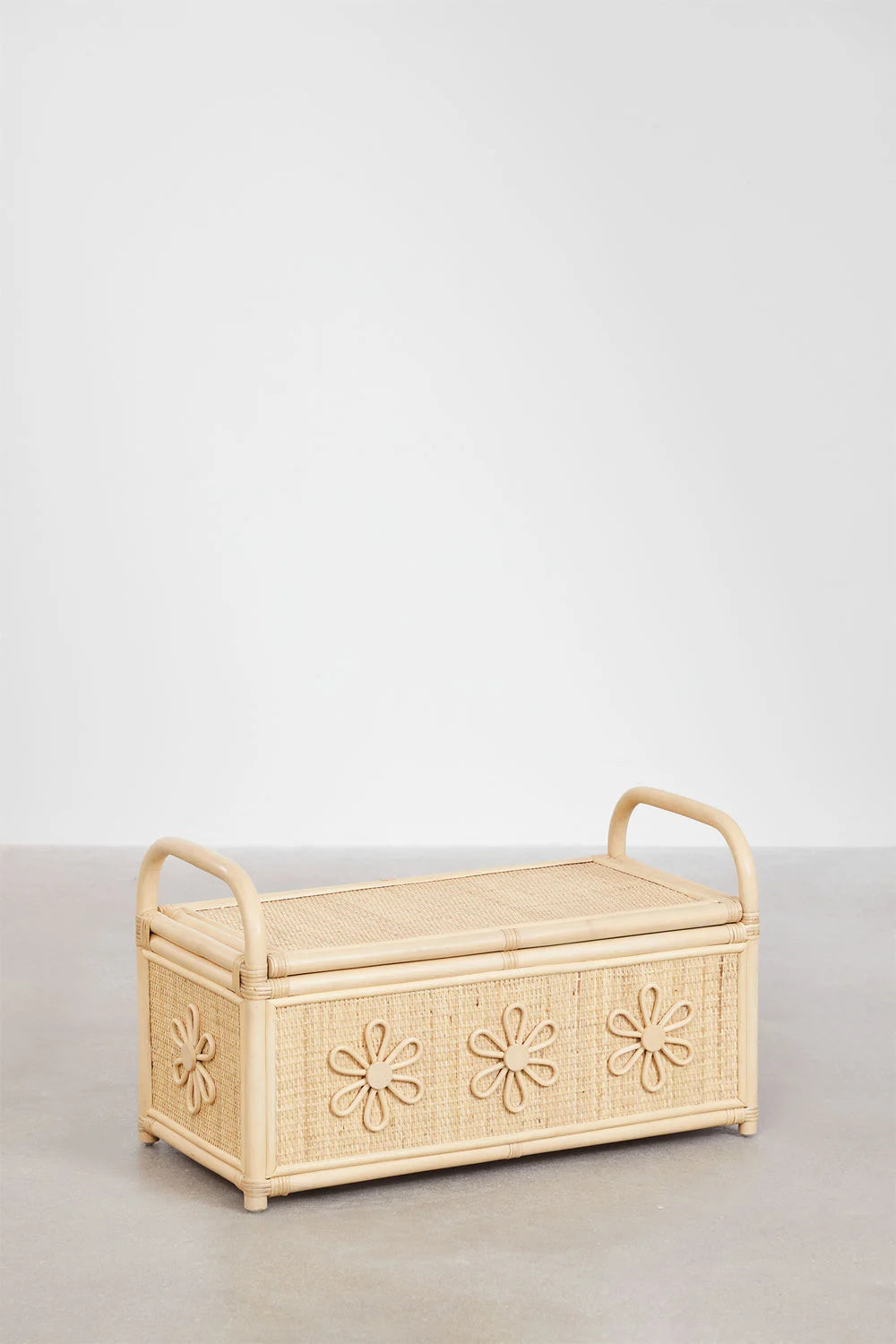 Découvrez la "Malle en rotin - Chambre enfant", une pièce maîtresse qui allie élégance naturelle et fonctionnalité pour la chambre de votre enfant. Fabriquée en rotin de haute qualité avec une finition laquée, cette malle robuste est conçue pour durer tout en ajoutant une touche de charme rustique grâce à ses motifs floraux embossés uniques.