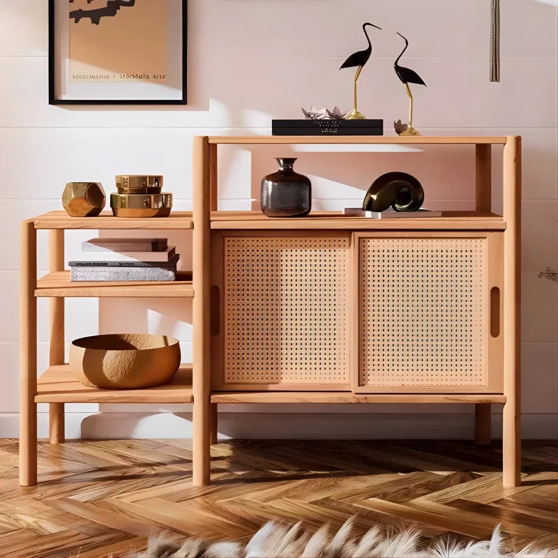 Les portes coulissantes en rotin ajoutent une touche bohème chic, tandis que les trois niches ouvertes offrent des solutions de rangement pratiques pour votre salon, chambre ou entrée.