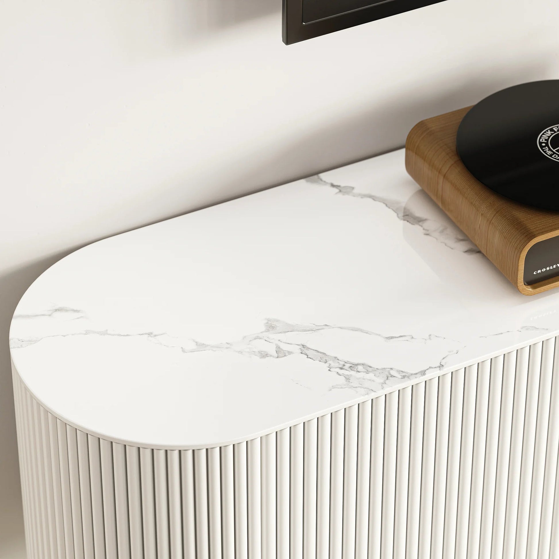 Meuble TV Murale Flottant en Pierre Frittée Blanche