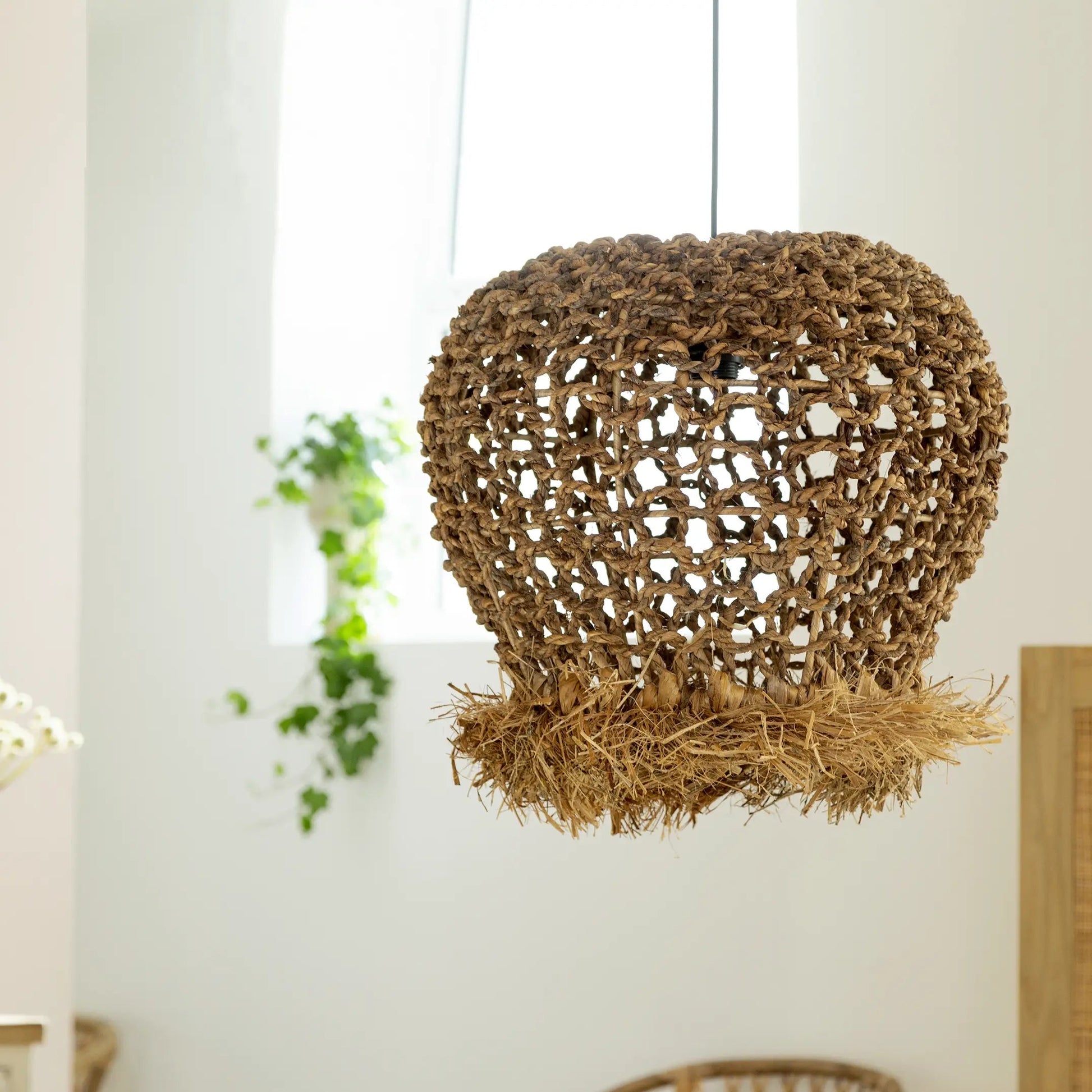 Découvrez la "Suspension en bananier Bali", une pièce maîtresse de décoration qui transforme l'ambiance de votre intérieur avec son style bohème unique. Fabriquée à partir de feuilles de bananier naturelles, cette suspension lumineuse offre une élégance exotique et chaleureuse, tout en mettant l'accent sur la durabilité grâce à ses matériaux écologiques.