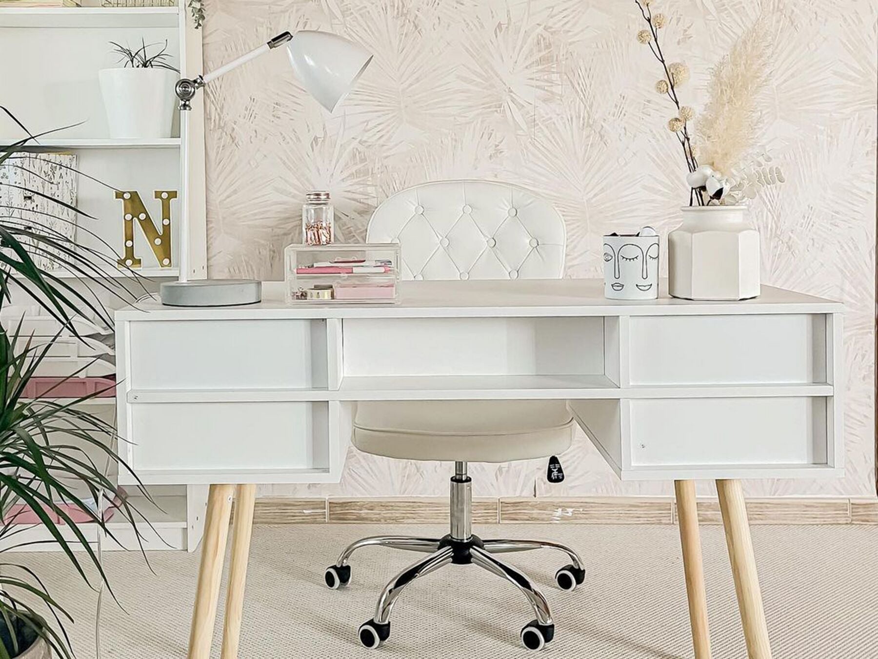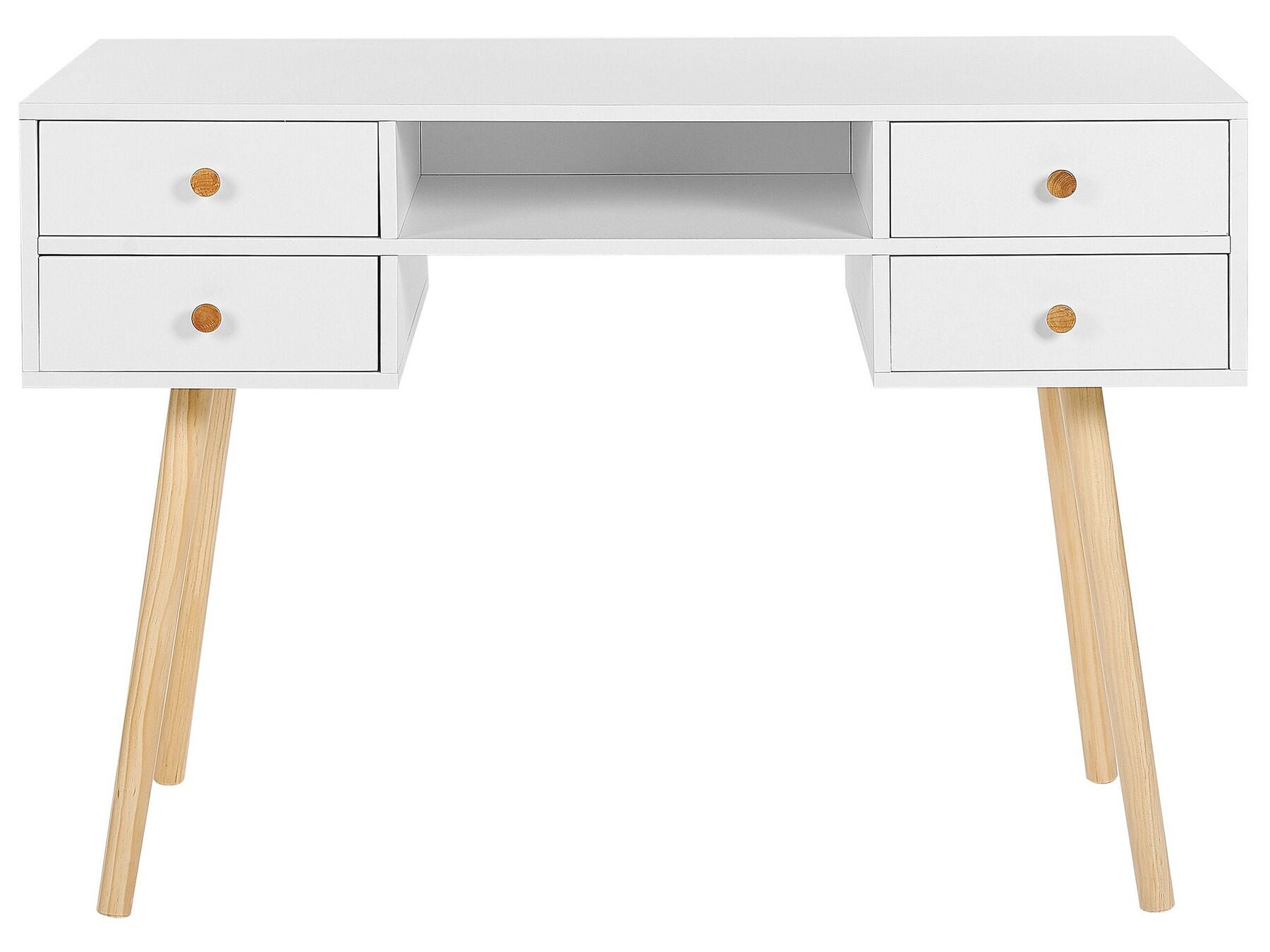 Transformez votre espace de travail avec notre Table de Bureau - 110 x 55 cm - Blanc, un mariage parfait entre style rétro et design scandinave. Conçue pour les jeunes professionnels et étudiants, cette table offre une esthétique élégante tout en maximisant la fonctionnalité grâce à ses quatre tiroirs spacieux qui gardent votre bureau impeccablement organisé.