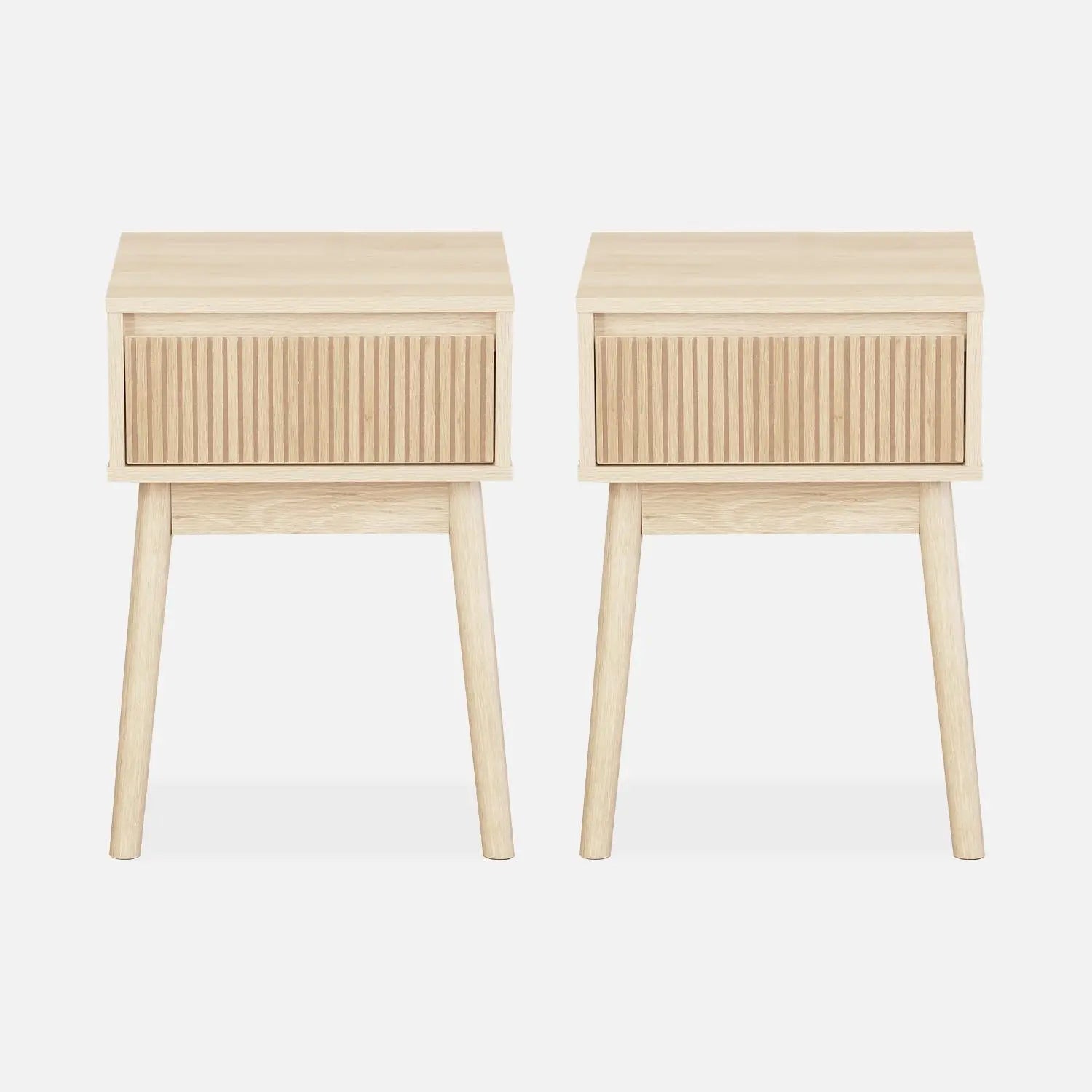 Table de Chevet avec un Tiroir (lot de 2) - Bois de Pin Clair